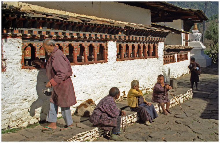 rund um den Tempel gibt es tausend Gebetsmühlen