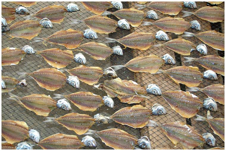 In Nazare werden Sardinen am Strand getrocknet