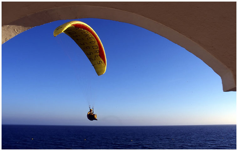 in Nerja fliegen die Gleitschirme am Strandhotel vorbei