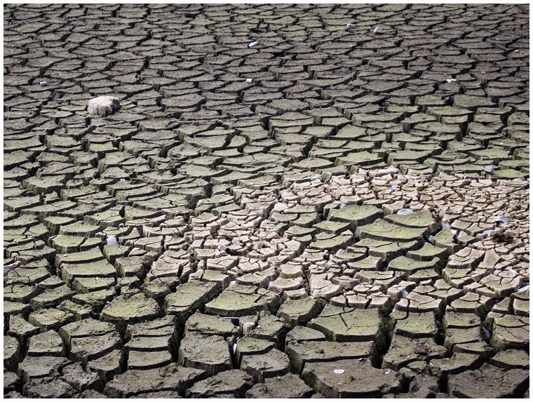 Ein leere Talsperre zeigt das wahre Gesicht