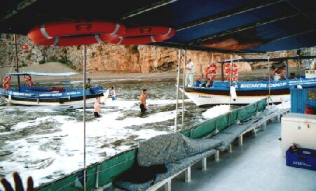 Festgefahren an der Durchfahrt zum Delta. Allabendliches Spektakel, denn abends müssen alle Touristen von Strand weg sein, weil hier die Karettschildkröte ihre Eier legen soll.
